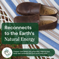 Earthing Harmony’s barefoot grounding shoes each come with a signature copper earthing rivet that ensures direct connection to earth with each step, all the time.
