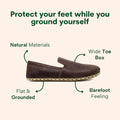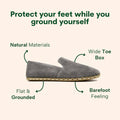 Each model is made with a wide toe-box that prevents bunions, offers enough space for your toes to spread freely and a flat sole that helps strengthen your natural muscles, all while you enjoy the additional benefits grounding has to offer.