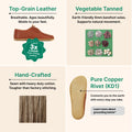For the sole of our shoes, we use natural buffalo leather, which is renowned for its strength and resilience. This unique choice of material not only ensures long-lasting durability but also promotes a grounding effect. We enhance the conductivity by incorporating a copper rivet at the base, amplifying the flow of electrical energy.